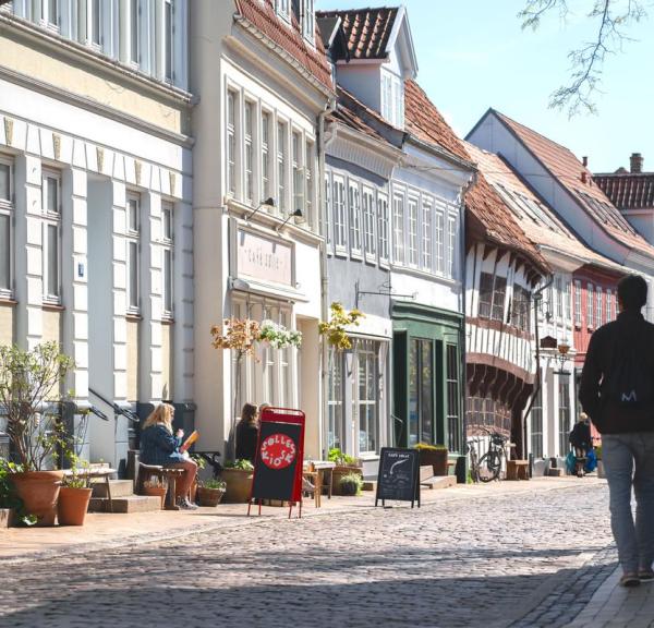 Odense är som gjort för att bara strosa runt och utforska de charmiga gränderna fulla av små caféer och restauranger. Fyn kallas ofta för Danmarks trädgård eller skafferi och de fantastiska lokala råvarorna sätter färg och smak på stadens restaurangmenyer. Du kan själv botanisera bland grönsaker, ost och annat närproducerat på matmarknaden på Sorte Brødre Torv. Passa även på att njuta av läcker street food på Storms Pakhus som är ett populärt tillhåll för lokala Odensebor och perfekt för en god måltid i avslappnad atmosfär.
